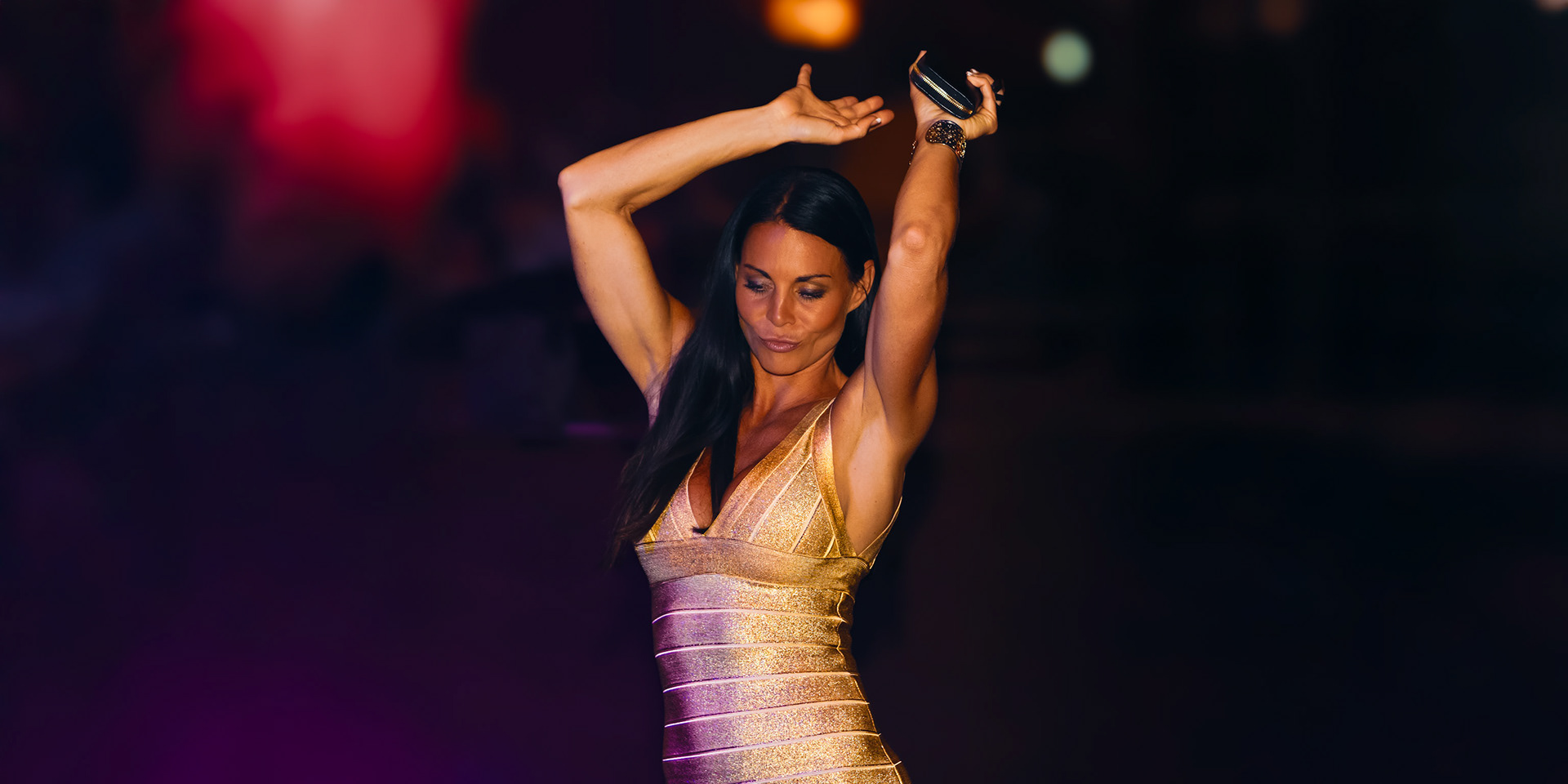 This photograph was taken during the TV4 and Biggest Loser premiere, capturing then “Coach Sabina” as she lit up the dance floor with effortless elegance and confidence. The creative focus was to translate the energy of the event into a timeless frame: a moment of movement, style, and presence. Dressed in shimmering gold, radiating strength and glamour — embodying both her role as a coach and her natural charisma beyond the screen.